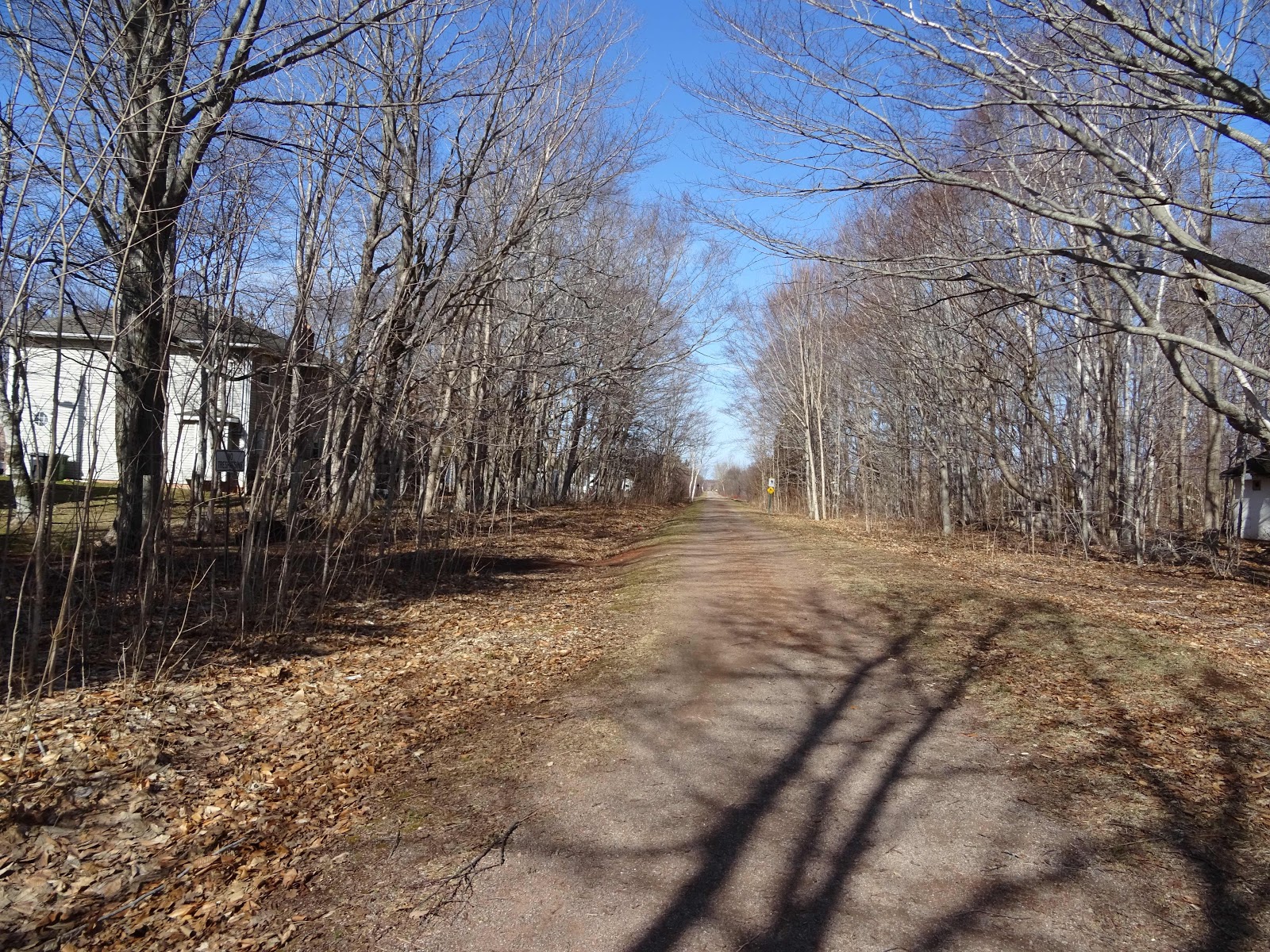 A hawk cast a shadow on the trail while Black Ducks took to flight as we rode by, quacking as they went.